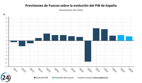 Funcas eleva la previsión del PIB 2024 al 3%, pero advierte sobre los efectos de DANA al cierre del año.