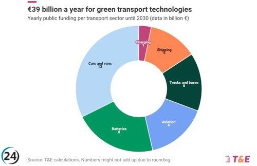 "Inversión de 39.000 millones anuales aseguraría transporte sostenible en Europa, afirma T&E."