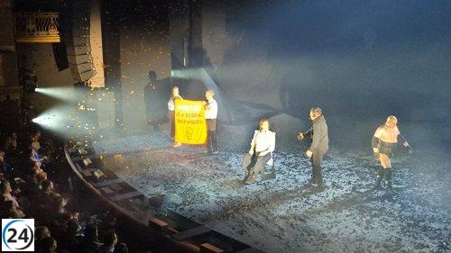 Activistas ambientales interrumpen actuación de Sigourney Weaver en Londres.