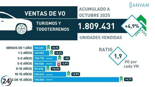 Las ventas de vehículos de segunda mano alcanzan 2,21 millones en 2025, con un crecimiento del 4,2%.