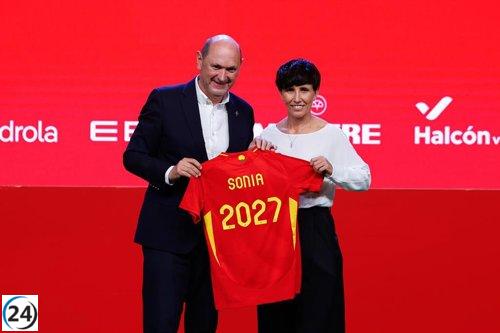Vicky López reconoce el legado de las pioneras del fútbol al recibir su galardón.